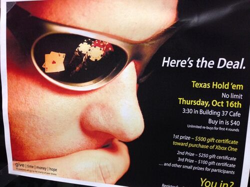 マイクロソフト社内でポーカー大会。私は出ませんでしたが。勝者には賞金は出るけどほとんどは募金として寄付されます。このあたりの発想の柔軟さがアメリカ企業だな〜っと感心しました。